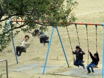 体育の終わりに 休み時間に 元気に遊ぶ子供たちです。