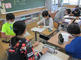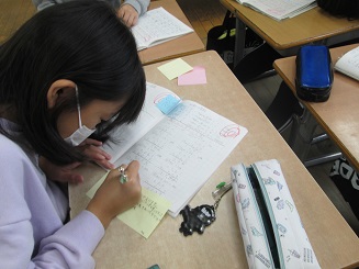 自分たちの自主学習の仕方を振り返り、友達の自主学習ノートを見ることでより自分に合った勉強の仕方を考えました。自分のノートや友達のノートを見て成長した自分と友達の良さを吸収していこうとする意欲を見せている姿がたくさん見られました。