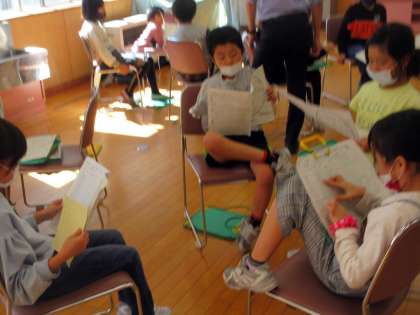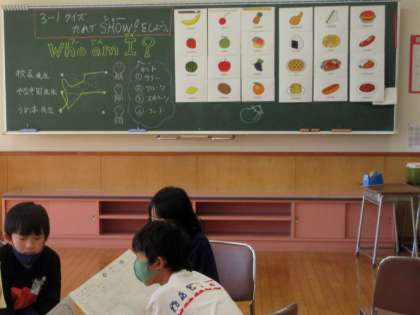 外国語の時間。 ヒントをもとに 誰だか当てる 「わたしは誰でしょう」クイズ。