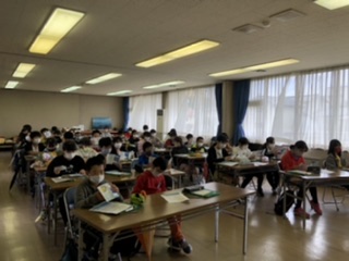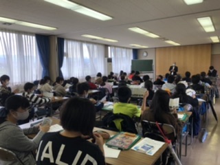6年生は総合的な学習の時間の校外学習として清流会館に来ています。イタイイタイ病対策協議会会長さんから講義をいただきます。