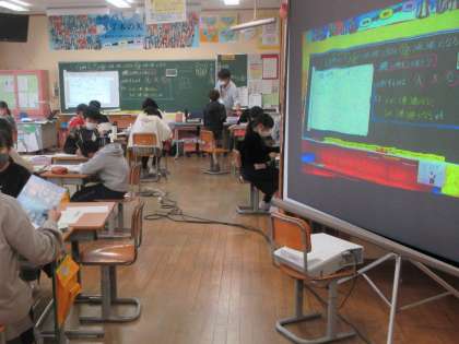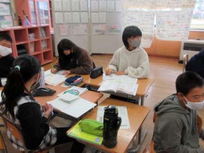 算数の学習中。 比例 について、学んだことをもう一度確かめています。