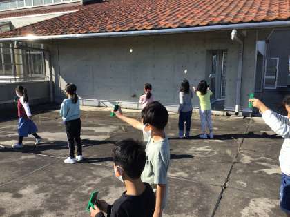 屋上から、グラウンドや体育館の壁まで光がとときみんなびっくりです。