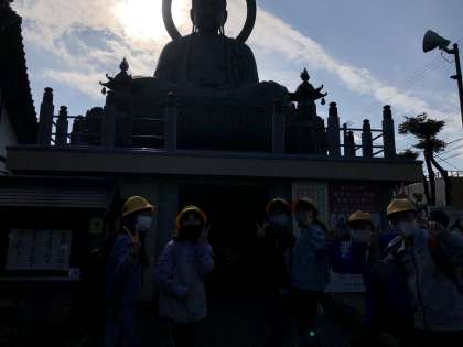 早速、高岡大仏を見学しています。大吉が出て喜んでいる様子もあります。