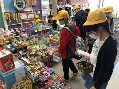 大仏の近くに駄菓子屋さんがあります。今は少なくなった駄菓子屋さんですが、街に残そうとお仕事をしておられるそうです。子供たちは、何が必要か考えながら買い物をしています。