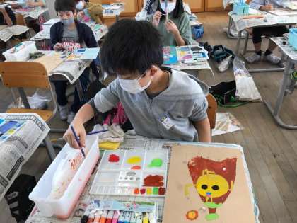 丁寧に色を塗っています。どの色使いだと楽しそうに見えるか、物語を展開できるか考えながら塗っています。