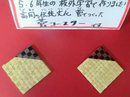 玄関ホールの「わくわくさん」情報局の前に、菅(すげ)コースターが2枚。