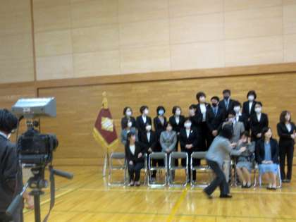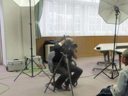 卒業アルバム用の写真を撮影しています。