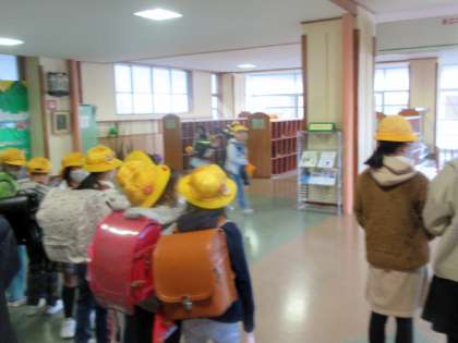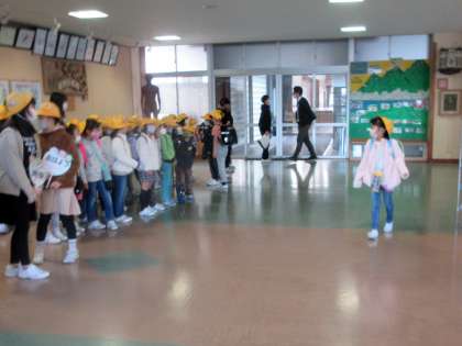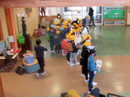 今朝は、玄関に2年生が集まってあいさつをしています。