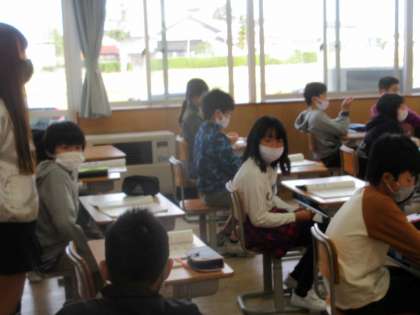 資源のことを考えて、自分たちでできる工夫を発表しています。
