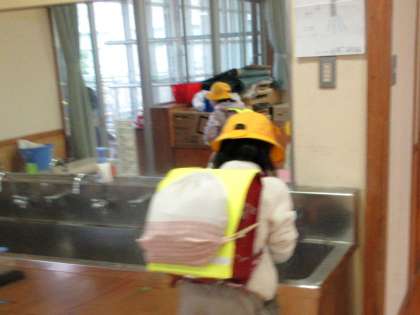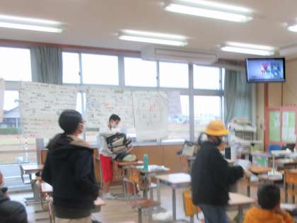 朝、校内テレビ放送に、感染対策のビデオが流れています。