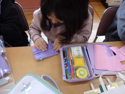 だんだん自分の作品が仕上がってきました。ティッシュケース、マスコット、クッションなど、思い思いの作品を作っています。みんなとても丁寧です。