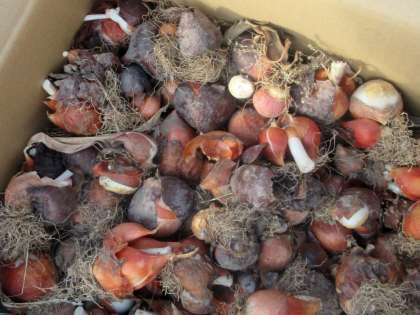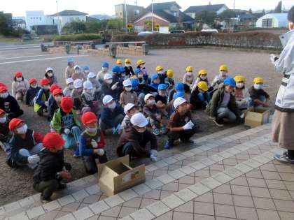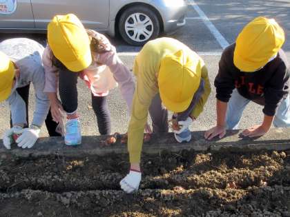 校庭の花壇にチューリップの球根を植えました。