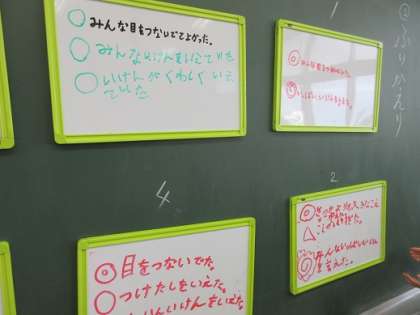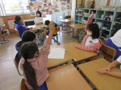 国語科の話す・聞くの学習です。話すとき、聞くときそれぞれのポイントを確認しながら話し合いを進めていました。