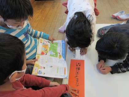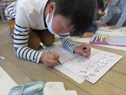 町探検で聞いてきたこと、見てきたものをポスターや新聞にまとめています。どんな記事にするのかみんなで話し合いながら考えていました。