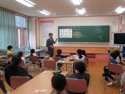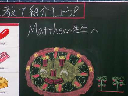 自分たちで考えたオリジナルピザをALTに紹介します。