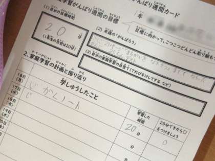 休みの日もめあてに向かって学習をがんばっている子供です。