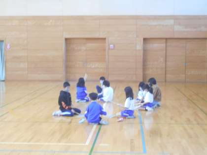 6年生が1年生に教えるのは、これで3回目。もう6年生も1年生も練習に慣れてきています。どのチームも工夫を凝らして順調に練習を進めているようです。