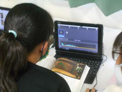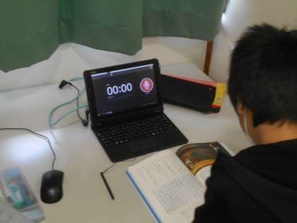 と、各ペアごとに学習を進めています。笑顔で音読している様子が見られるなど、日本の伝統文化に慣れ親しんでいるようですした。
