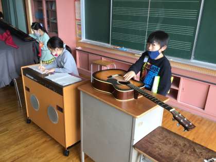 今日は、音楽室の楽器を使ってさらに音と振動の関係を調べました。
