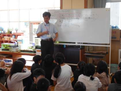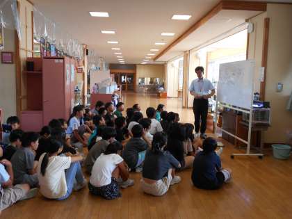 地域の川に出かけた後、振り返りました。先生と一緒にじっくりと考える様子が素敵でした。