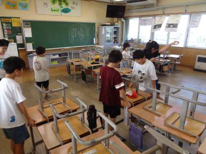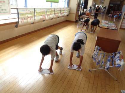 みんなで協力して掃除をしていました。時間いっぱい隅々まできれいにしようと頑張るすてきな4年生でした。