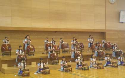 今日の太鼓の練習は、衣装を着て行いました。校長先生や教頭先生、教務主任の先生にも見ていただきアドバイスをいただくことができました。学習発表会まであと1週間、一生懸命練習をがんばります。
