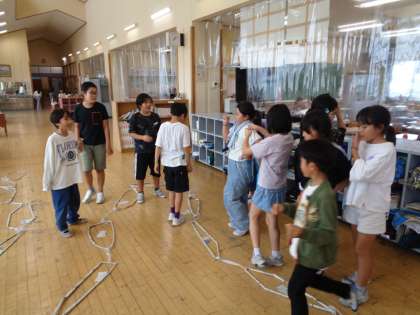 昼休み、ゲーム係が作った大きなすごろくのお披露目がありました。「やりたい人〜」という声かけにたくさんの友達が集まり、遊んでいました。「もっとたくさんのマスがあったらいいな」「こんなお題も入れられる?」などのリクエストを受けて、係の子供はより進化させようと意気込んでいました。