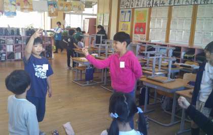 太鼓の演奏を聞いてもらった後は、グループに分かれて遊びました。どのグループも楽しんで遊んでいる様子でした。帰りは5年生も年長さんも名残惜しそうでした。