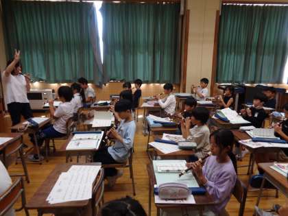 運指を確認しながらリコーダー練習をしました。曲に合わせて上手に演奏することができるようになってきました。また、歌練習では、曲を聴いてどんな感じがするか、どのように歌えばよいと思うかを伝え合っていました。