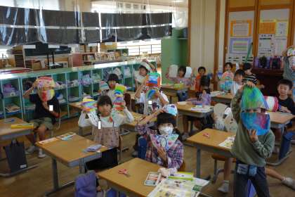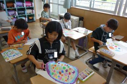 図画工作科の学習の様子です。思い思いのたまごをデザインしました。