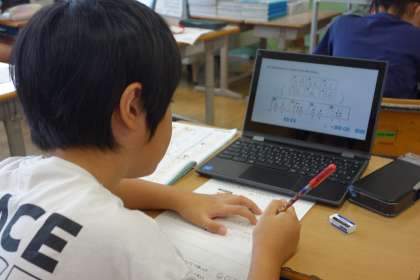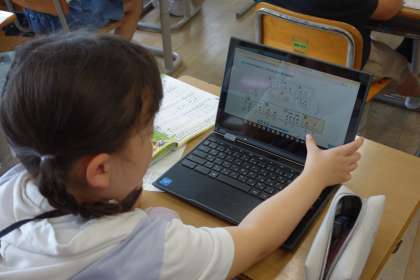 音楽科の学習の様子です。リズムカードを組み合わせて、お祭りのリズムをつくりました。「繰り返し」のリズムを大切にして、自分がいいと思うリズムを試行錯誤しながら見付けました。