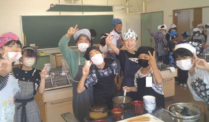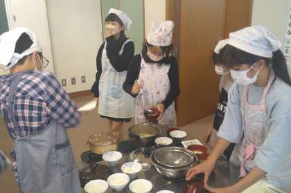 今日の家庭科では、1組も2組も調理実習を行いました。お米を鍋で炊いて、豆腐とネギの味噌汁を作りました。お米を炊くには時間がかかること、煮干しからだしをとることの大変さを子供たちは学んでいたようでした。