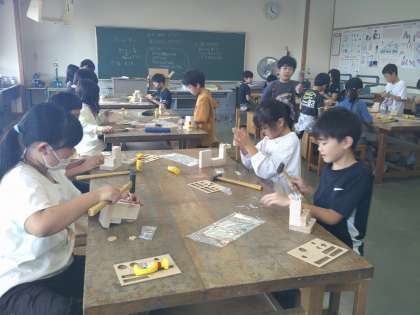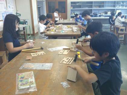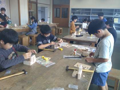 子供たちは、げんのうの使い方に気を付け、くぎの打つ場所や打ち方を考えながら、慎重にかつ夢中になって取り組んでいました。くぎを打つことに随分慣れることができたようです。