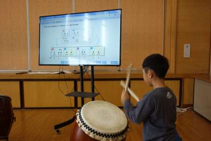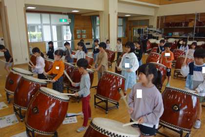 音楽科の学習の様子です。今日は、実際に和太鼓を使い、それぞれがつくった繰り返しのリズムを楽しみました。