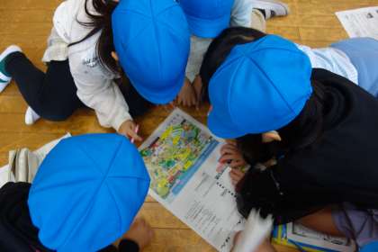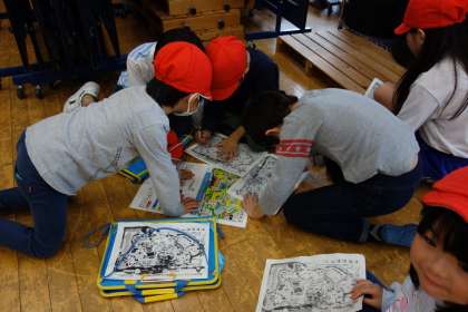 1年生と一緒に「自由散策」の打ち合わせを行いました。遠足当日が楽しみですね。