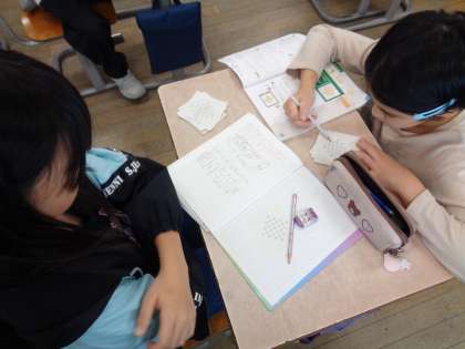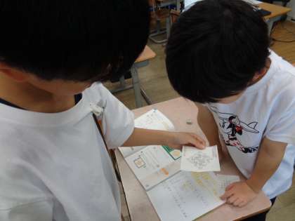 計算のきまりについて学習しています。自分の考えをもった子供から、どんどん友達と関わり、学びを深めています。