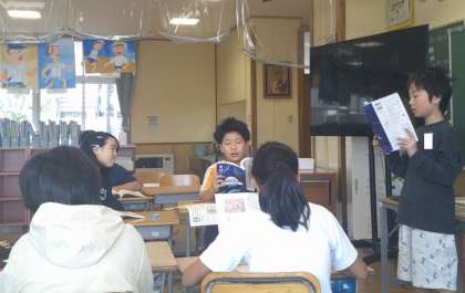 今日の国語の授業では、古典に親しむために浦島太郎を読みました。1人の児童が先生役となったり、男女交代して読んだりなどして、昔の言葉に親しみをもちました。