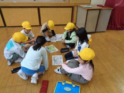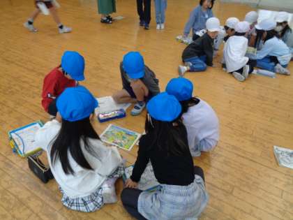11月1日のファミリーパーク遠足に向けて3回目の集会を開きました。先生方の注意を聞いてから、班に分かれて活動内容の確認や変更、注意事項について2年生を中心に話し合いました。チームワークも抜群で、明後日が楽しみな子供たちです。