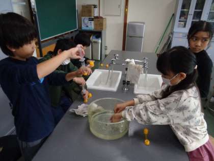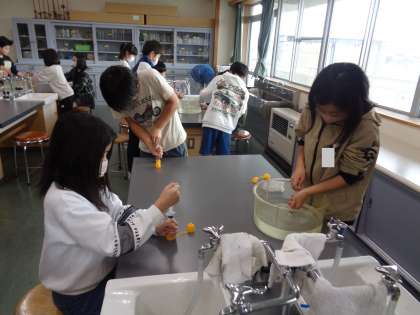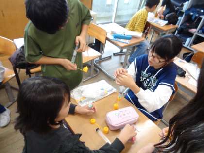 実験キットを使って、とじこめた空気や水を押すとどうなるのか調べました。空気は力を加えると体積が小さくなり、水は押しても体積が変わらないことが分かりました。