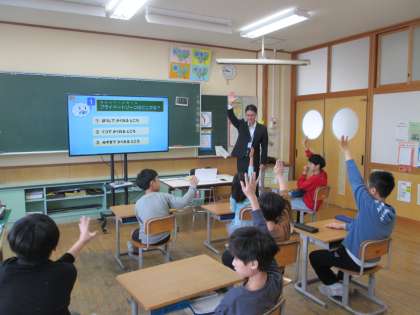 富山県警少年サポートセンターの方をお招きし、「くもくん教室」を開いていただきました。プライベートゾーン(水着を着ると隠れる部分と口)についてや、自分の身体も相手の身体も大切だということを学ぶことができました。
