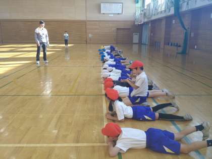 今日はスポーツ指導員派遣事業がありました。コーディネーショントレーニングということで、いろいろな楽しい運動を教えていただきました。