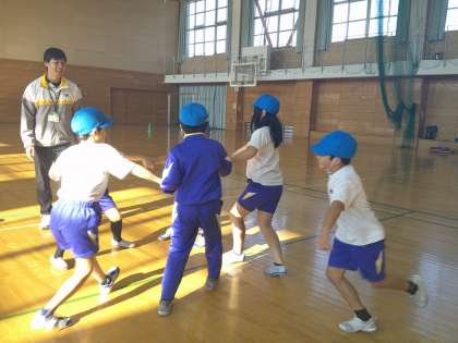 いろいろな姿勢からダッシュしたり、ペアやグループでできるおにごっこをしたりして、体をたくさん動かすことができ、笑顔もいっぱいになりました。