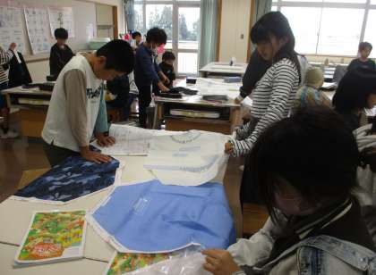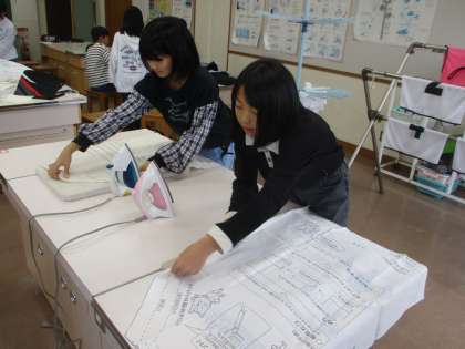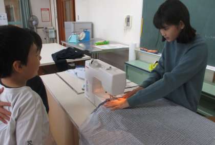 自分のエプロンをつくろうと手順を考えながら取り組んでいます。