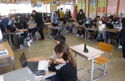学習参観での一場面です。版画の下絵を考え、おうちの方にアドバイスをもらう時間をとりました。よい作品にしようとがんばる姿が見られました。