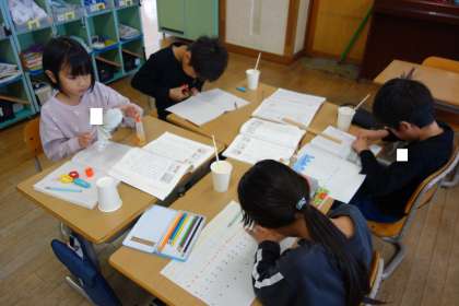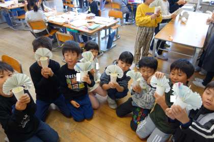 国語科の学習の様子です。説明文を丁寧に読み進め、正確な作り方が分かった子供たち。前回よりも上手に紙コップ花火が出来上がりました。