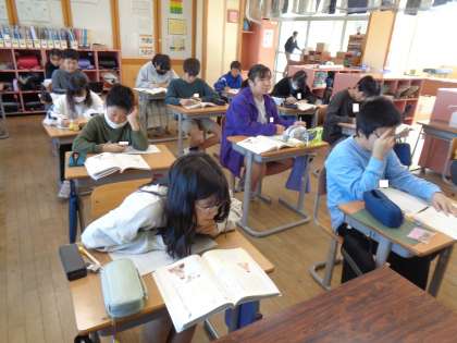 日本文化の魅力は何かを考え、文章で表しました。自分が伝えたいことを、読み手に分かりやすく伝えるためにどんな工夫をすればよいかを考え、取り組んでいました。