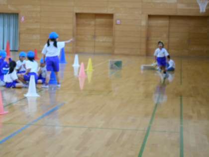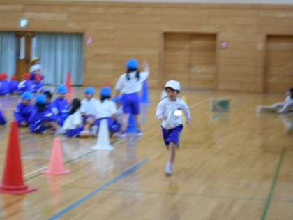 障害物リレーに取り組みました。段ボールをぽんぽんと飛び越していきます。