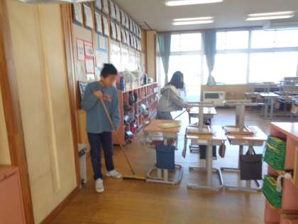 6年生は、掃除に真剣に取り組んでいます。どのような掃除場所でも、隅々まで掃除し、最後の点検まで行っています。まだ終わっていない掃除場所の手伝いをする様子から、成長を感じています。
