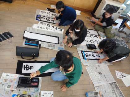 今年の4年生の書き初め課題は「雪の立山」です。宮野地区から見える雄大な立山のように、大きく堂々とした字が書けるように練習していきます。