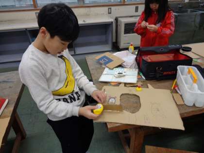 段ボールで飾りをつけたり、丁寧に色を塗ったりと、各々の工夫がたくさん見られました。